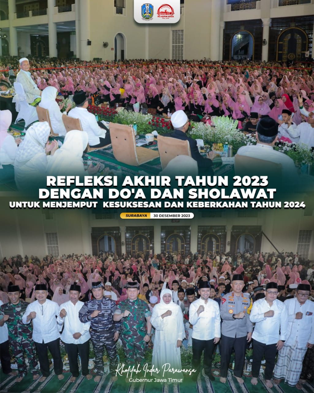 Sementara itu Sekdaprov Jatim Adhy Karyono melaporkan bahwa refleksi akhir tahun 2023 dan doa awal tahun 2024 dilaksanakan dengan tujuan untuk muhasabah dan refleksi atas perjalanan selama tahun 2023 serta menyiapkan rencana kehidupan di tahun 2024.