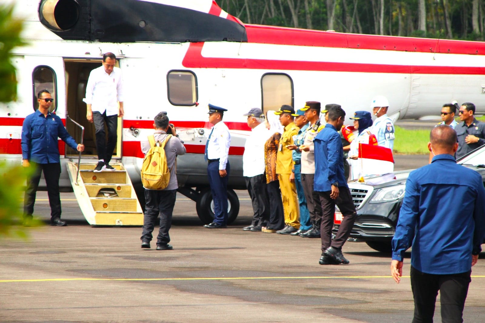 Setibanya di Bandara Tunggul Wulung Cilacap, Presiden Joko Widodo menuju Kecamatan Jeruklegi untuk meninjau operasional Tempat Pengolahan Sampah Terpadu atau TPST.
