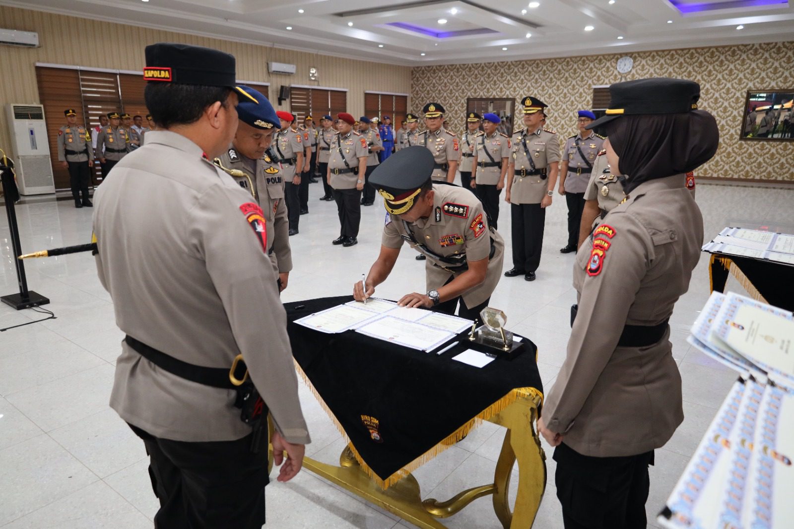 SERANG, Jatim II tNews.co.id – Kapolda Banten Irjen Pol Abdul Karim memimpin upacara serah terima Pejabat Utama (PJU) Polda Banten yaitu Irwasda Polda Banten, Dirlantas Polda Banten, Dirbinmas Polda Banten, Dirresnarkoba Polda Banten, Dirsamapta Polda Banten, Dirpolairud Polda Banten, Dansat Brimob Polda Banten, Kapolresta Tangerang dan Kapolres Pandeglang bertempat di Aula Serbaguna Polda Banten pada Selasa (02/01).