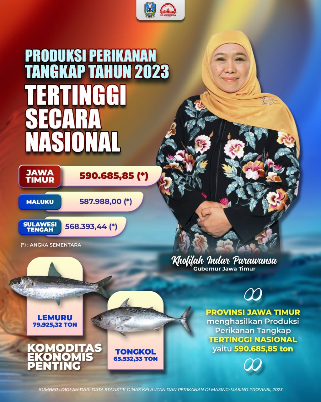 Untuk diketahui, total produksi perikanan tangkap di Jawa Timur tahun 2023 mencapai 590.685,8 Ton.