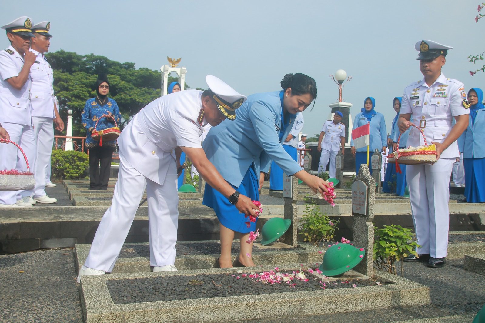 Hadir dalam ziarah rombongan dan tabur bunga Pasops Lanal Semarang Mayor Laut (P) M. Hadi Purwanto, Pasintel Lanal Semarang Mayor Laut (E) Sudianto, Dandenpom Lanal Semarang Mayor Laut (PM) Choirul Luqman, Pasprogar Lanal Semarang Mayor Laut (KH) Rendi Afrian, para Perwira, Bintara, Tamtama, PNS Lanal Semarang, serta para pengurus Jalasenastri Cabang 4 Korcab V DJA II.