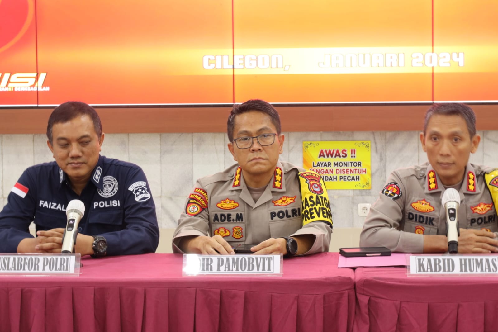 CILEGON, Banten II tNews.co.id – Polda Banten gelar press conference tentang laporan masyarakat yang terdampak akibat adanya bau menyengat yang diduga dari kegiatan PT. Chandra Asri Pasific TBK bertempat di aula Polres Cilegon pada Senin (22/01).