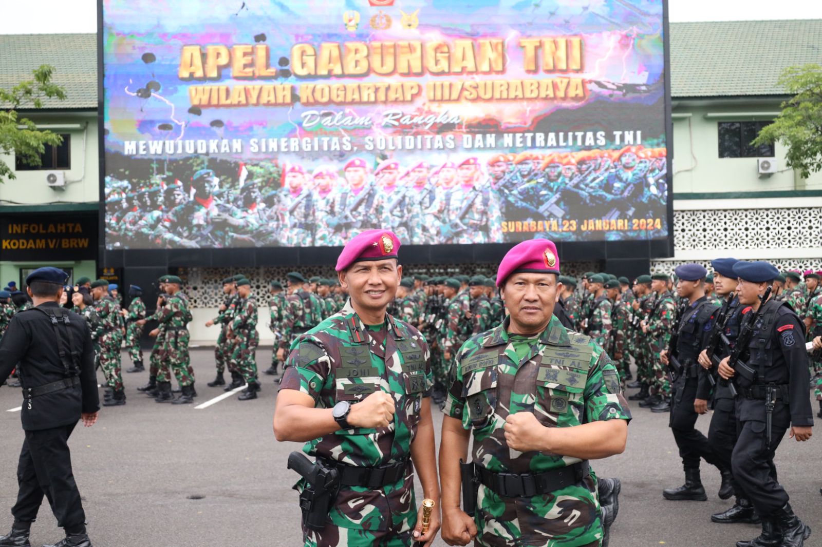 “Saya berharap dengan digelarnya apel gabungan ini para satuan dan kotama bawah bisa bersinergi dengan satuan samping seperti Polri dan Institusi Pemerintahan guna menciptakan kondusifitas menjelang Pemilihan Umum pada 14 Februari 2024 mendatang, saya juga berharap kepada seluruh jajaran TNI untuk tetap menjaga netralitas TNI agar pemilu dapat berjalan dengan lancar dan aman,” Ujar Dankogartap III/Surabaya.