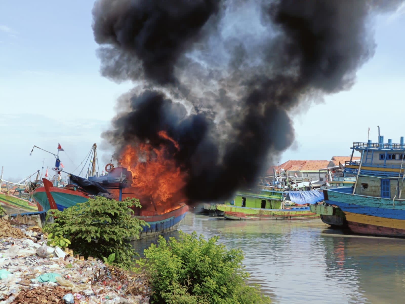 BREBES, tNews.co.id – Anggota Posal Kluwut Lanal Tegal bersama Damkar Kab. Brebes, Polres Kab. Brebes, Satpolairud Kab. Brebes, BNPB Kab. Brebes serta Masyarakat setempat gerak cepat atasi kebakaran kapal KM. Sanu Jaya di Dermaga Kluwut Brebes. (25/01/2024)