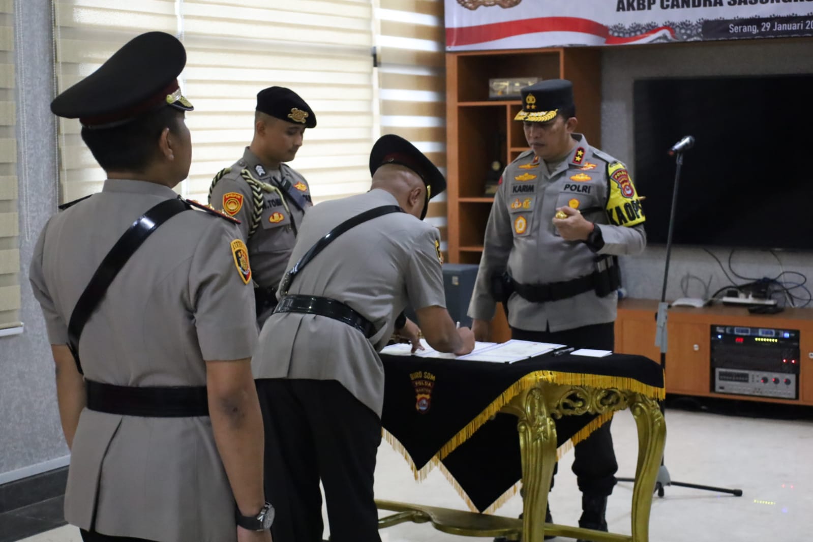 SERANG, Banten II tNews.co.id – Kapolda Banten Irjen Pol Abdul Karim memimpin langsung upacara Serah Terima Jabatan (Sertijab) Kapolres Serang yang digelar di Ruang Perjamuan Polda Banten pada Senin (29/01).