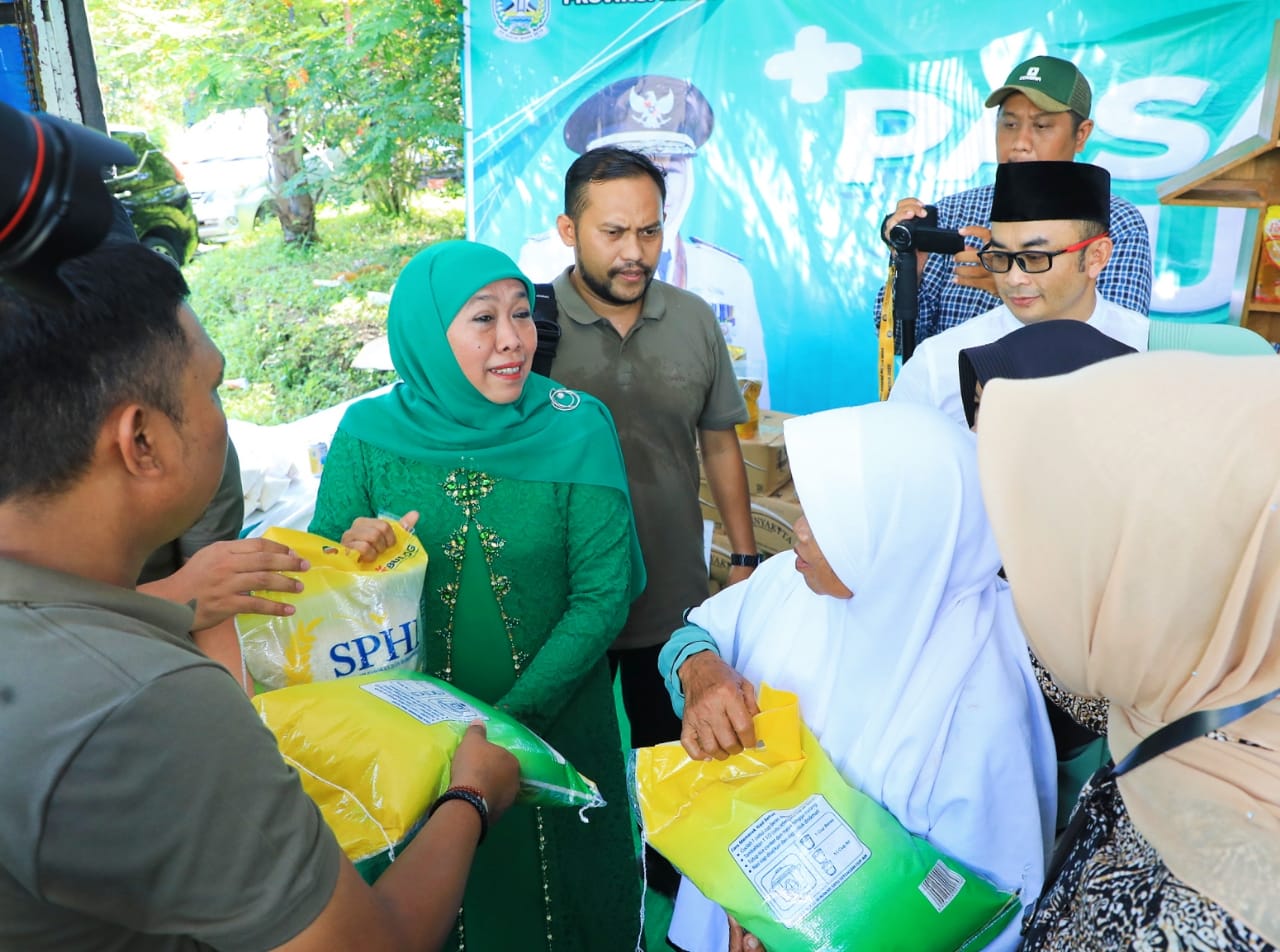 Dalam kesempatan tersebut, Gubernur Khofifah juga membagikan bantuan zakat produktif dan paket sembako kepada kurang lebih 39 orang penerima manfaat. Sebagian besar merupakan pedagang makanan dan minuman yang berjualan di sekitar lokasi pasar murah.