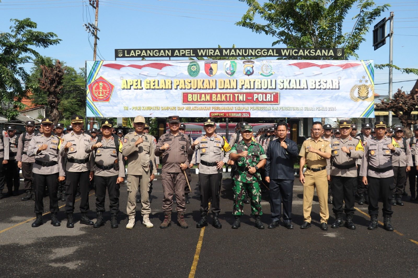 Kapolres Sampang AKBP Siswantoro S.IK, MH melalui Kasi Humas Polres Sampang Ipda Dedy Dely Rasidie SH, MH, M.Psi selesai pelaksanaan apel menyampaikan kepada awak media bahwa apel gelar pasukan dan patroli skala besar dilaksanakan dalam rangka bulan bakti TNI-Polri tahun 2024.
