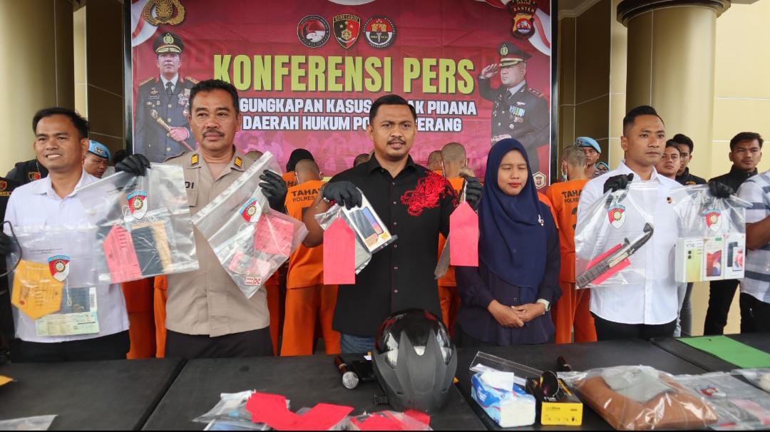 Kasat Reskrim Polres Serang AKP Andi Kurniady Eka Setiabudi mengatakan penangkapan 16 tersangka tindak pidana umum dilakukan oleh beberapa Unit Reskrim Polsek jajaran Polres Serang dilakukan dalam kurun waktu satu Minggu. “16 pelaku yang kami amankan merupakan pelaku tindak pidana umum, seperti Curas Curat Curanmor (C3), penganiayaan, judi, dan premanisme,” kata AKP Andi saat menggelar Presscon di halaman Mapolres Serang pada Rabu (07/02).