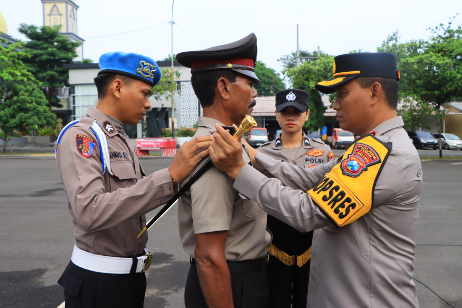 Ajun inspektur polisi satu (Aiptu) Sampu anggota Polsek Montong Polres Tuban mendapatkan kenaikan pangkat pengabdian setingkat lebih tinggi menjadi Inspektur polisi dua (Ipda) tiga bulan menjelang purna tugas terhitung mulai tanggal 1 Maret 2024.