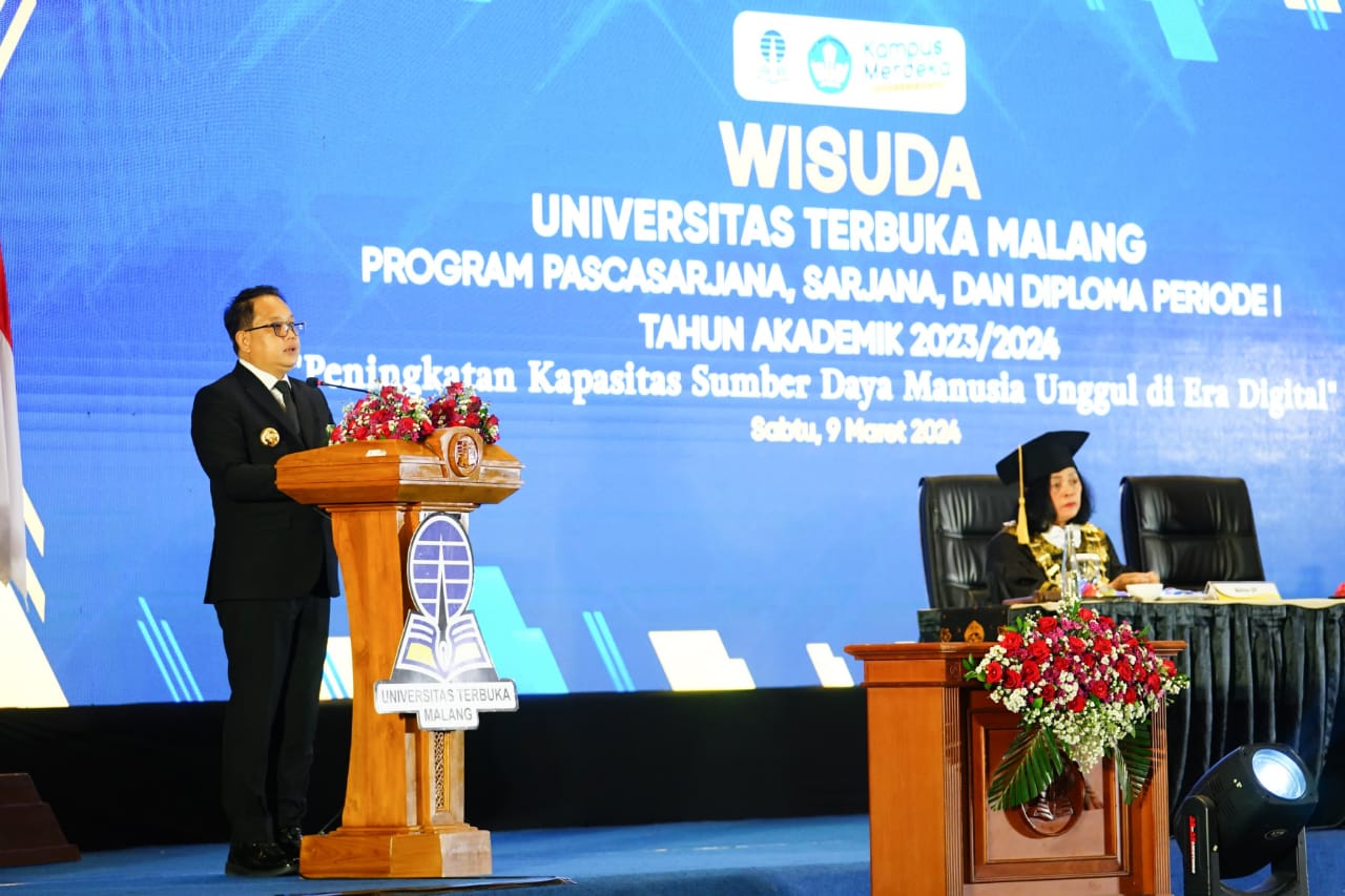Di kesempatan ini, Pj. Gubernur Adhy menyampaikan ucapan selamat dan sukses kepada seluruh wisudawan dan wisudawati di Universitas Terbuka Malang.