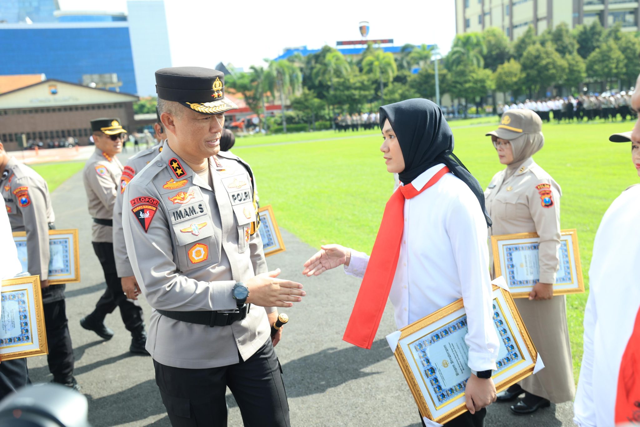 Penghargaan tersebut di serahkan saat melaksanakan upacara Hari Kesadaran Nasional di lapangan Mapolda Jatim pada Senin (18/3/2024).