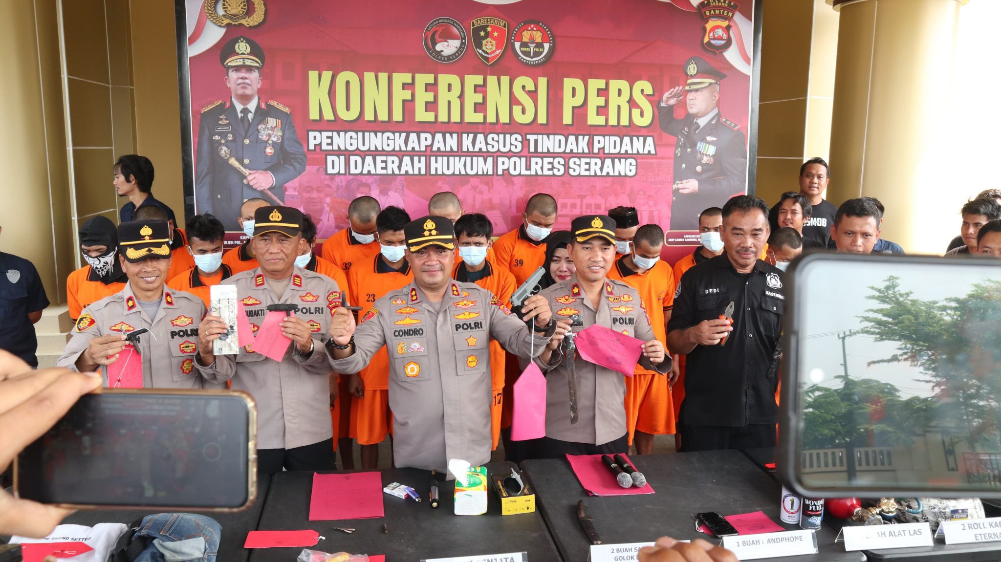 Dari 16 pelaku kejahatan yang diringkus, 2 diantaranya terpaksa dilumpuhkan dengan timah panas karena melakukan perlawanan yang mengancam keselamatan jiwa petugas. “Dari 16 pelaku kejahatan yang kami amankan, 2 diantaranya terpaksa dilakukan tindakan tegas dan terukur karena mengancam keselamatan petugas,” tutur Kapolres Serang AKBP Condro Sasongko pada Selasa (28/05).