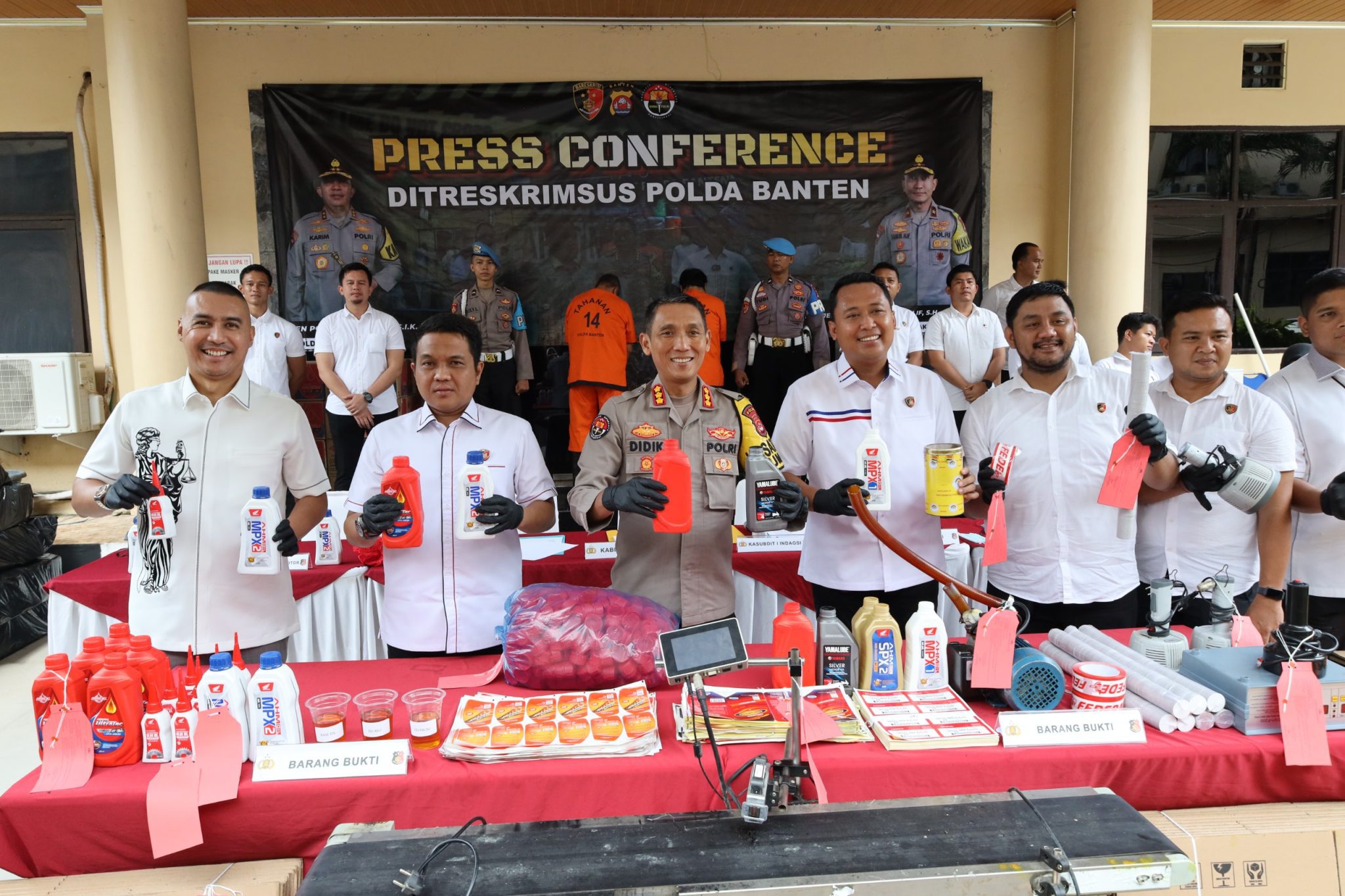 SERANG, Banten II tNews.co.id – Subdit 1 Indag Ditreskrimsus Polda Banten berhasil ungkap kasus tindak pidana Perlindungan Konsumen dan/atau Perdagangan dan/atau Perindustrian dengan cara memproduksi dan/atau memperdagangkan barang berupa Oli dengan berbagai merek yang tidak memenuhi atau tidak sesuai dengan standar yang dipersyaratkan atau diduga palsu bertempat di Ruko Bizstreet Blok W08 Kec. Panongan, Kab. Tangerang, Prov. Banten dan Gudang yang beralamat di Ruko Picaso Blok P04/08A, Citra Raya, Kab. Tangerang, Prov. Banten