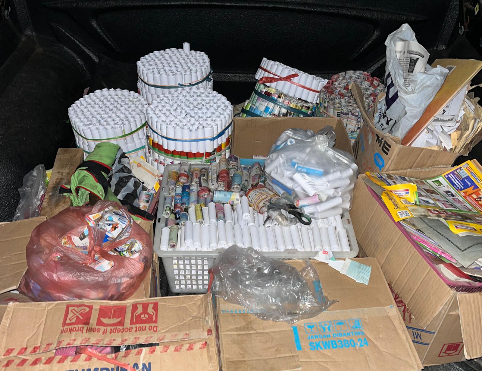 Pada saat digeledah di dalam rumah tersebut ditemukan ratusan bahan peledak atau mercon.