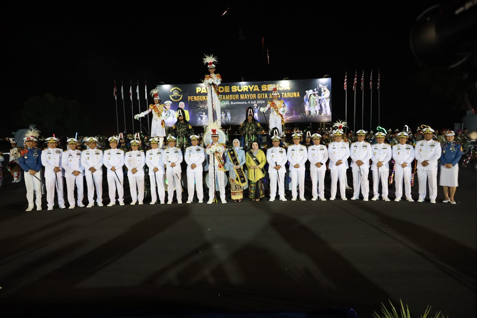 SURABAYA, Jawa Timur II tNews.co.id – Akademi TNI Angkatan Laut (AAL) melaksanakan Parade Surya Senja dalam rangka Serah Terima Jabatan Tambur Mayor Genderang Suling Gita Jala Taruna AAL yang dipimpin Ketua Umum Jalasenastri Ny. Fera Muhammad Ali selaku Ibu Taruna AAL, di Lapangan Arafuru, Bumimoro, Surabaya. Kamis (04/07/2024).