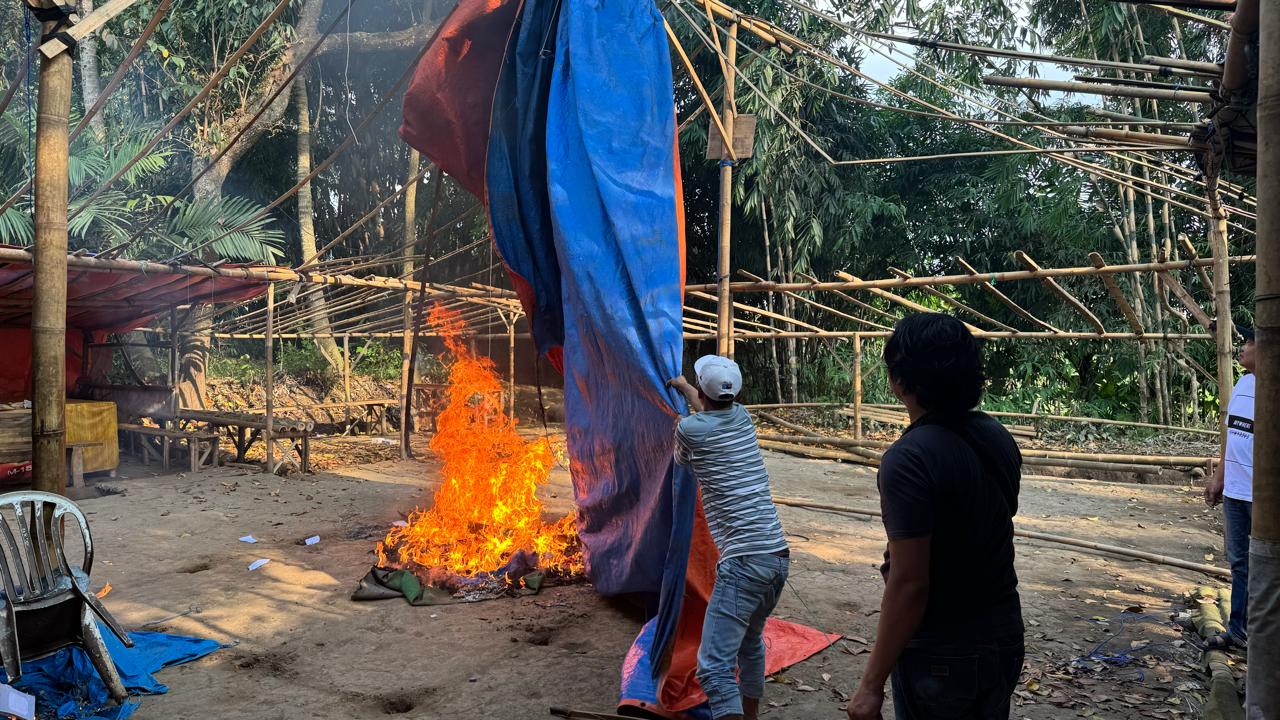 “Semuanya dibakar, terpal dan bangunan. Ya, agar tidak bisa digunakan kembali,” imbuhnya.