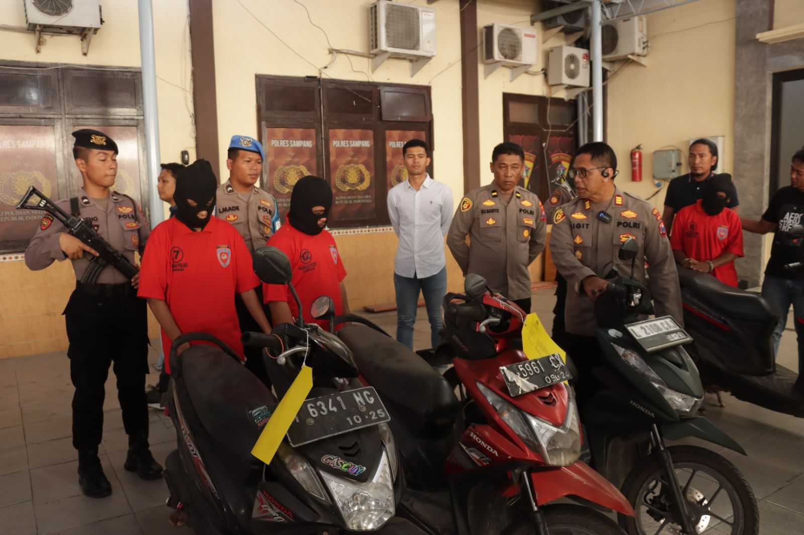 AKP Sigit Nursiyo menyampaikan bahwa AJ (44) warga Kecamatan Banyuates, MH (19) warga Kecamatan Camplong dan RD (30) warga Kecamatan Semampir Kota Surabaya diamankan petugas karena telah melakukan pencurian kendaraan bermotor.