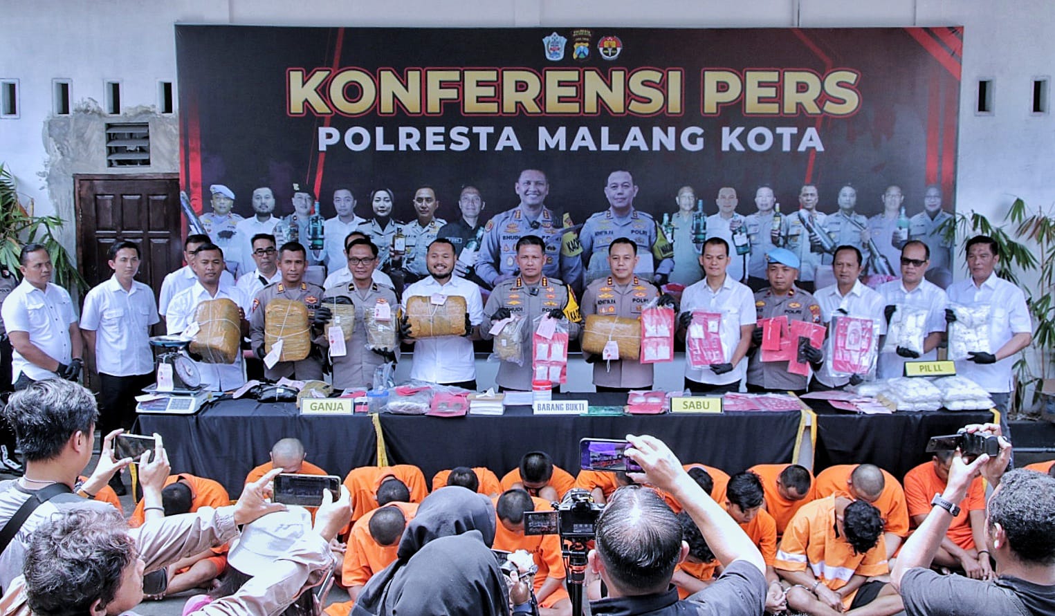 KOTA MALANG, Jawa Timur II tNews.co.id  – Dalam operasi pemberantasan narkoba yang digelar selama 12 hari, mulai tanggal 11 hingga 22 September 2024, Polresta Malang Kota berhasil menangkap 31 tersangka dari 22 kasus yang berbeda.