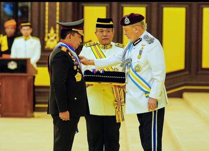 JAKARTA, tNews.co.id – Kapolri Jenderal Polisi Drs. Listyo Sigit Prabowo mendapat gelar Panglima Gagah Pasukan Polis (PGPP) dari Kerajaan Malaysia. Penghargaan itu diserahkan langsung oleh Raja Malaysia Kebawah Duli Yang Maha Mulia Seri Paduka Baginda Yang Dipertuan Agong XVII Sultan Ibrahim Ibni Sultan Iskandar.