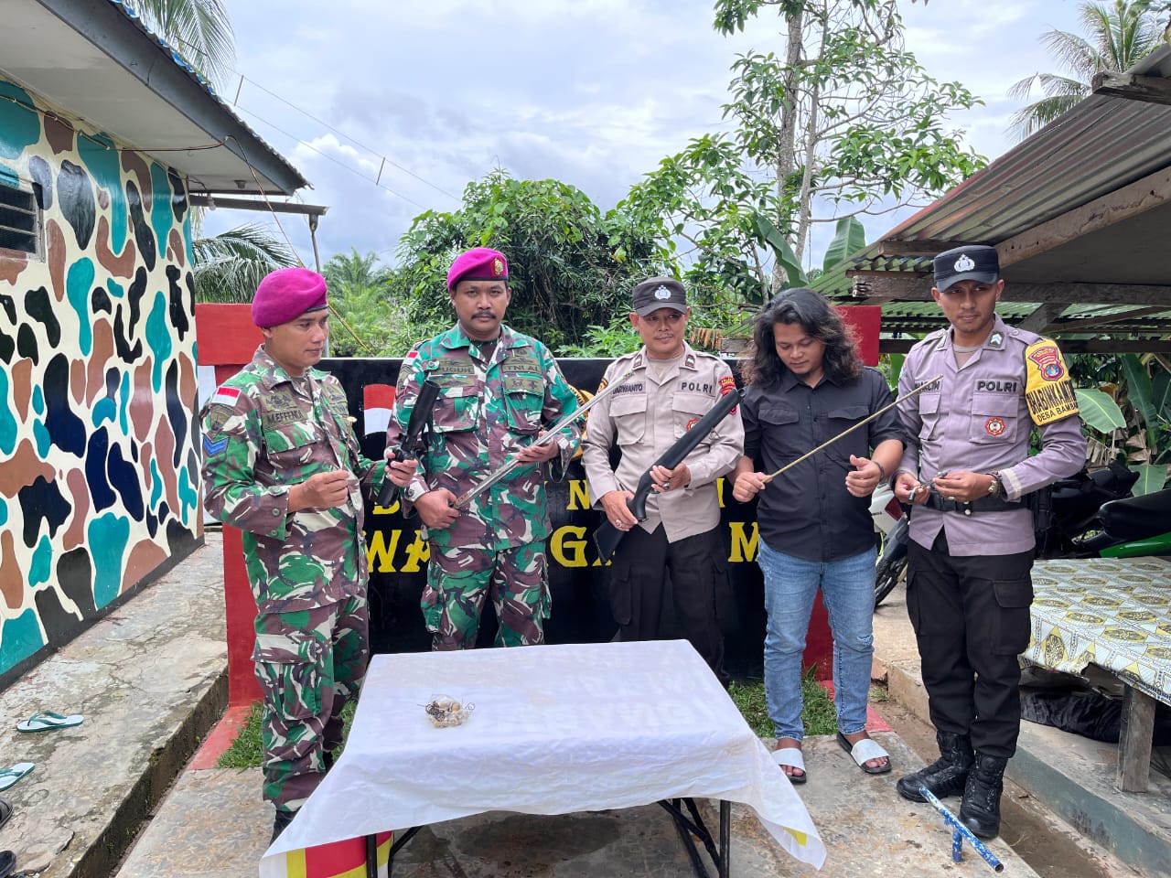 SEBATIK BARAT, Kalimantan Barat II tNews.co.id – Pada hari Minggu, 9 Maret 2025, Tim Gabungan yang terdiri dari Satgas Marinir Ambalat, Koramil Sebatik Barat, dan Polsek Sebatik Barat berhasil menggagalkan penyelundupan senjata rakitan di Dermaga Penyebrangan Bambangan Kecamatan Sebatik Barat, Kabupaten Nunukan, Kalimantan Utara. Penangkapan ini terjadi antara pukul 11.00 hingga 12.30 WITA, ketika tim yang sedang melaksanakan patroli rutin menemukan sebuah tas yang berisi komponen senjata rakitan, yang diduga berasal dari negara tetangga.