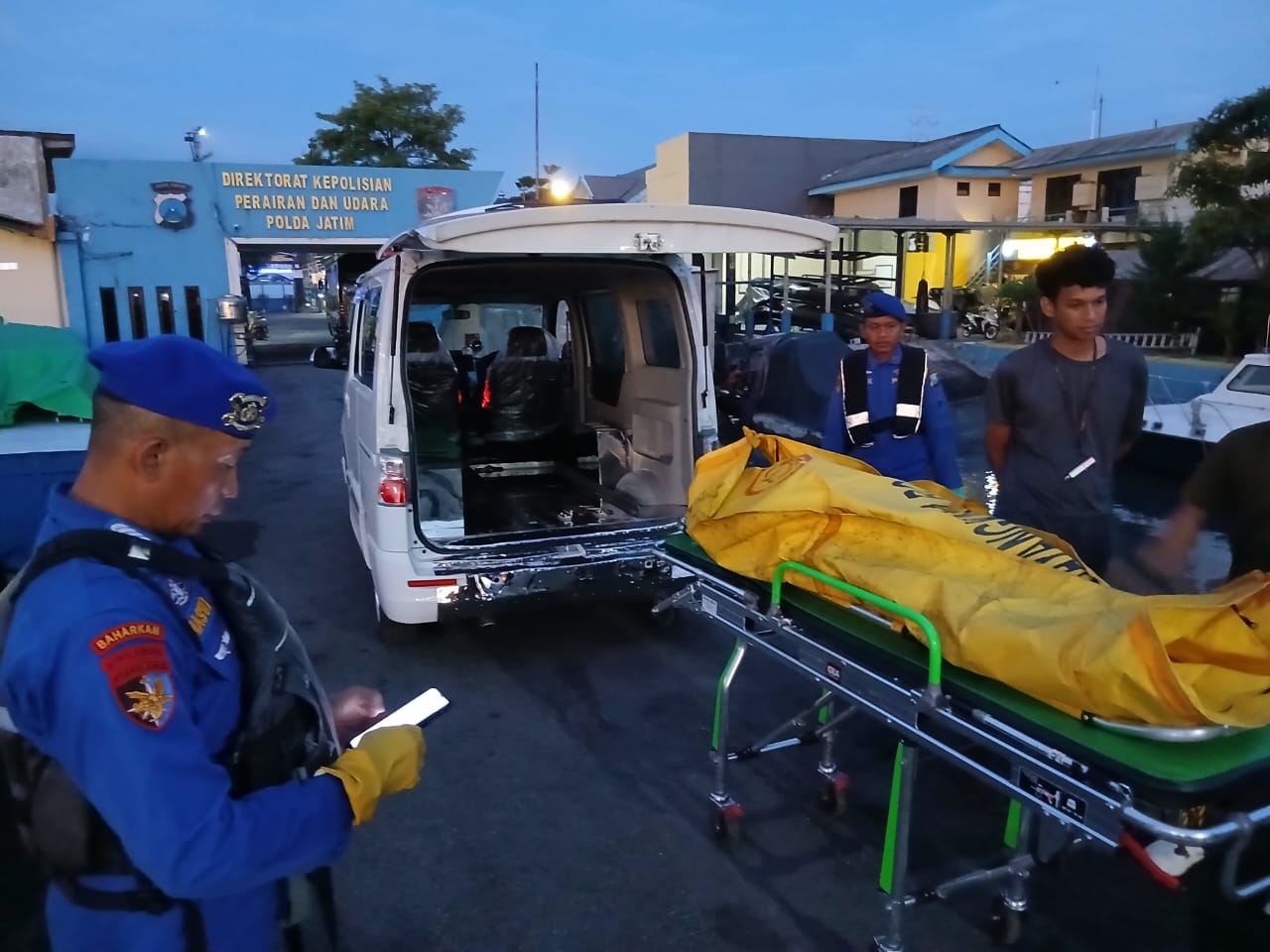 Atas penemuan mayat team Polairud Polda Jawa Timur yang dibantu Tim Inafis Polres Pelabuhan Tanjung Perak Surabaya melakukan evakuasi mayat dengan menggunakan kapal KP X-1039, KP X-2005, KP X-2006 dan KP Brantas X-300 menuju di Perairan ICT/ Surabaya, Minggu (18/5/25) sekitar pukul 16.30 wib.