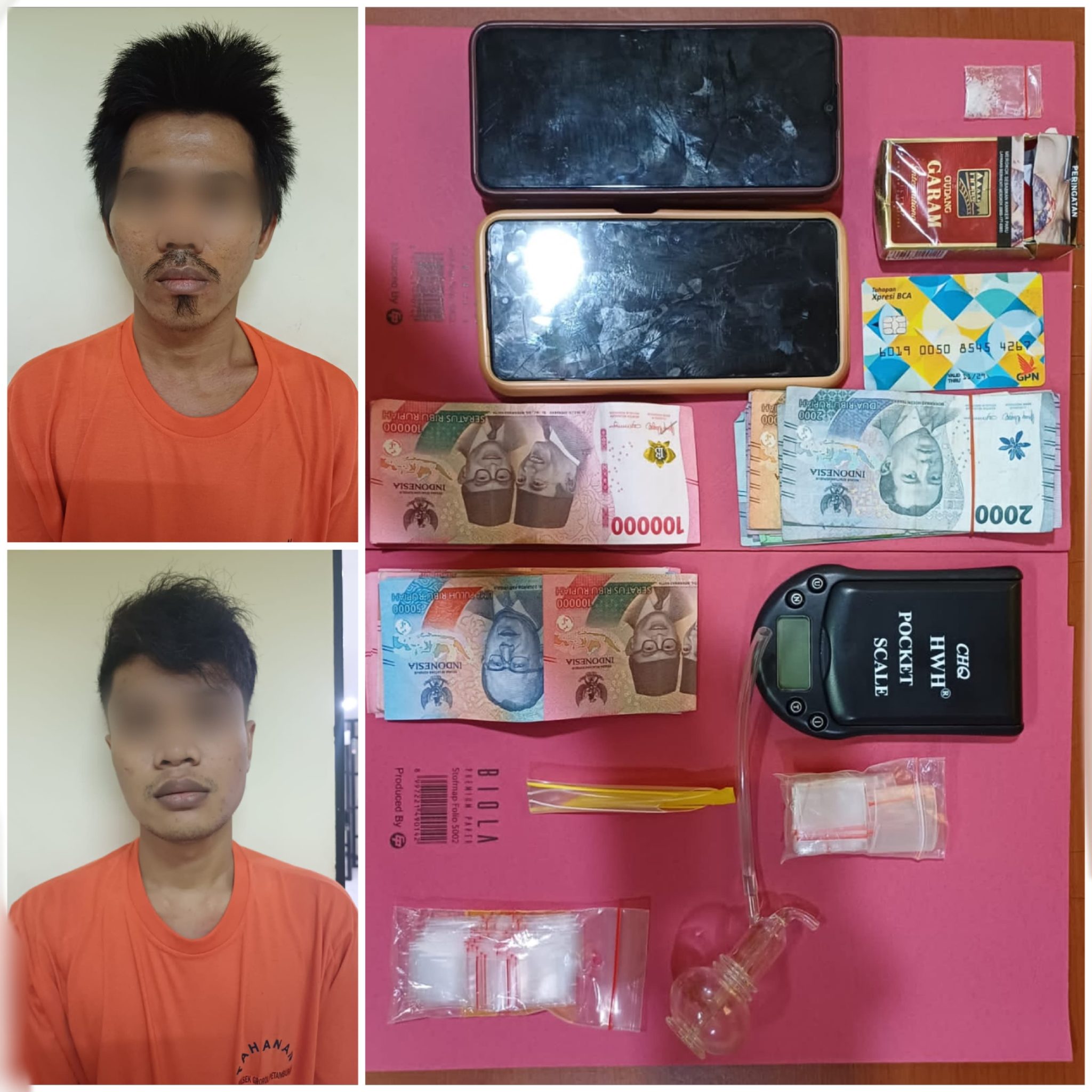 Dari hasil penangkapan tersebut, petugas menyita sejumlah barang bukti berupa satu klip sabu seberat 0,29 gram, uang tunai total Rp 2.747.000, dua unit ponsel, alat hisap sabu, timbangan elektrik, serta dua bundel plastik klip kecil.