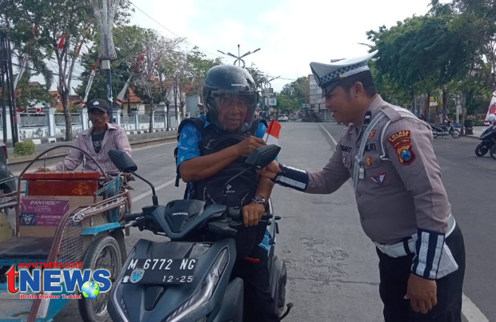 Sampang, Jatim II tNews.co.id – Menyambut Hari Ulang Tahun (HUT) Kemerdekaan Republik Indonesia ke-80, Satuan Lalu Lintas (Satlantas) Polres Sampang menggelar kegiatan Polantas Menyapa dengan memasang bendera Merah Putih pada kendaraan masyarakat pengguna jalan.