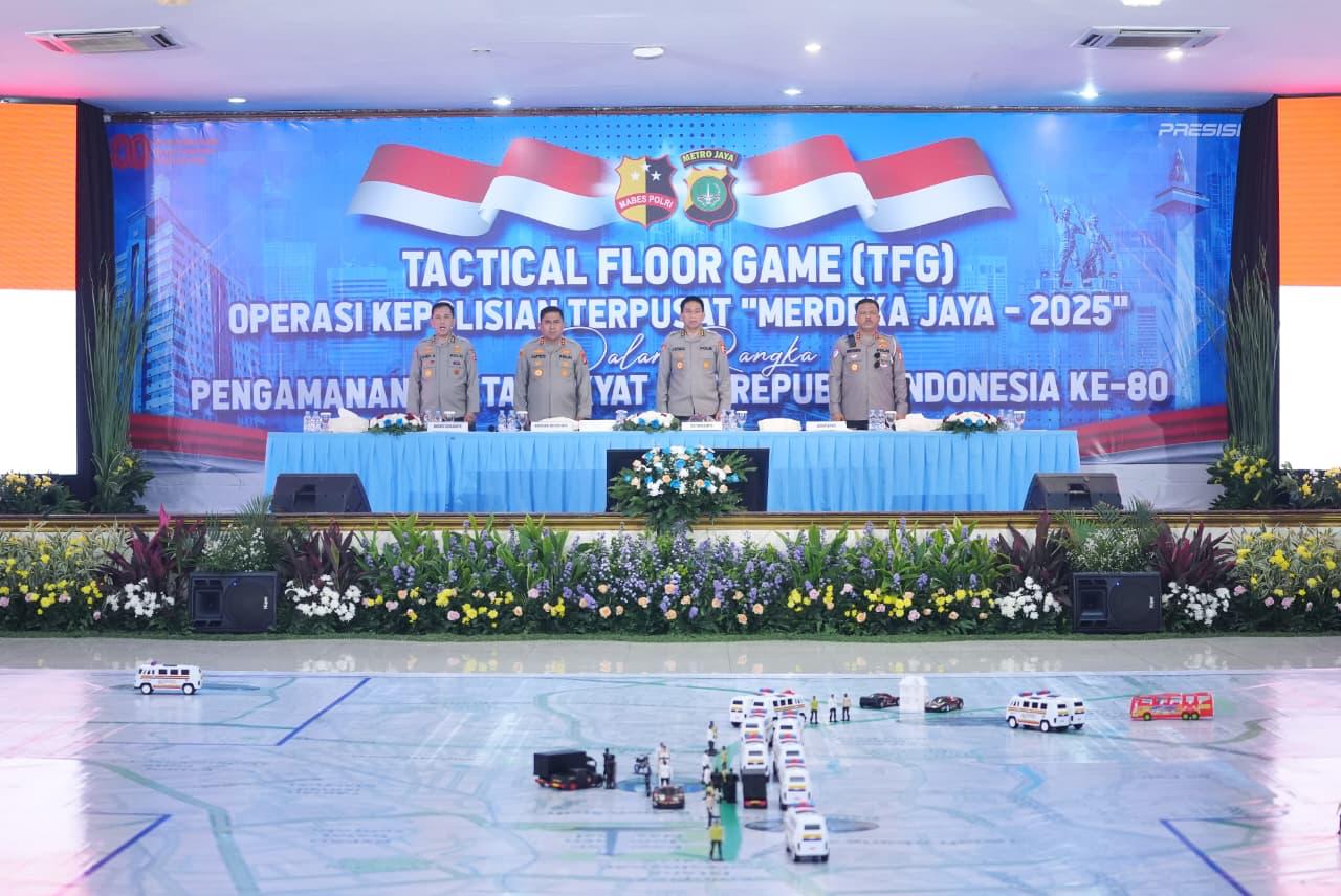 “Mabes Polri dengan Operasi Merdeka Jaya bersama Polda Metro Jaya siap melaksanakan pengamanan rangkaian HUT RI ke-80,” tegas Agus dalam Tactical Floor Game (TFG) Operasi Terpusat Merdeka Jaya 2025 di Aula Gedung BPMJ Polda Metro Jaya, Kamis (14/8/2025).