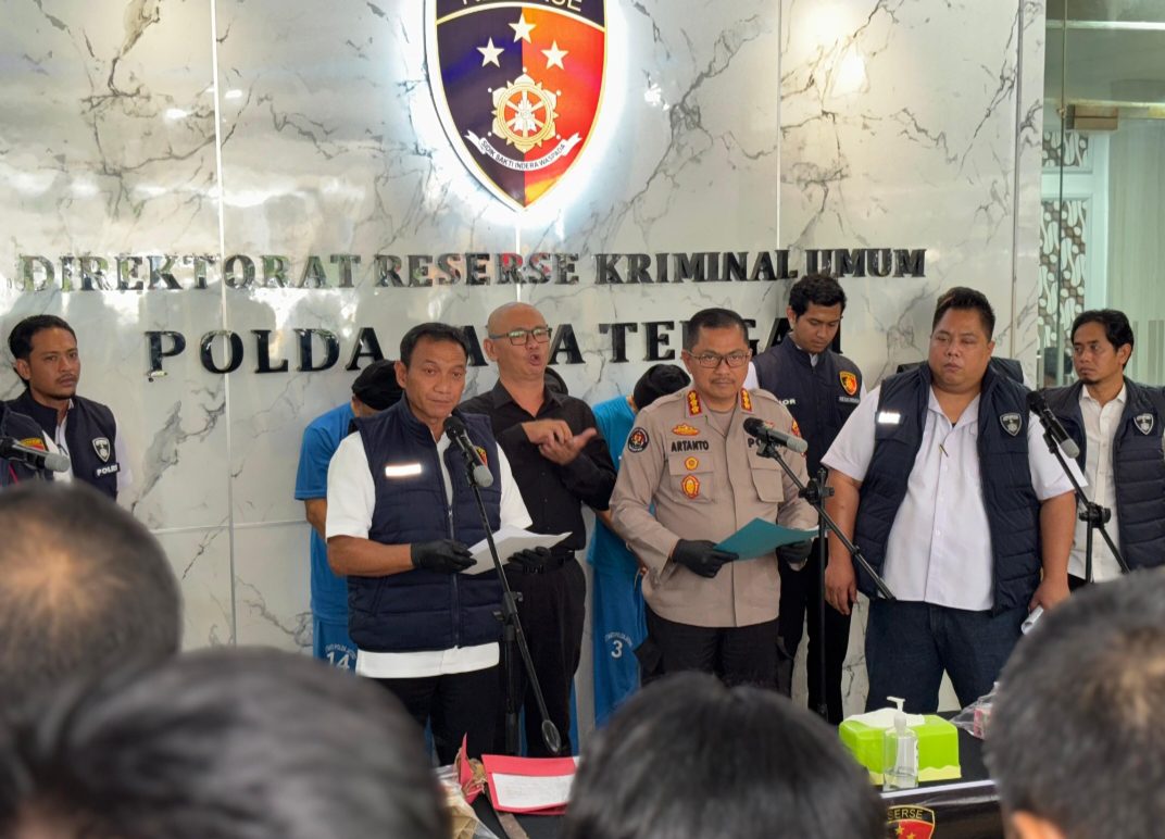 Dalam rilis pers di lobi Ditreskrimum Polda Jateng, Rabu (20/8/2025), Dirreskrimum Polda Jateng Kombes Pol Dwi Subagio menjelaskan, tiga orang tersangka berhasil ditangkap, yakni berinisial YY alias Surya (62), HH alias Johan (55), dan TS alias Chandra (52). Dua pelaku lainnya masih buron, masing-masing bernama Steven dan Lenny yang dikenal kerap berpindah-pindah lokasi.