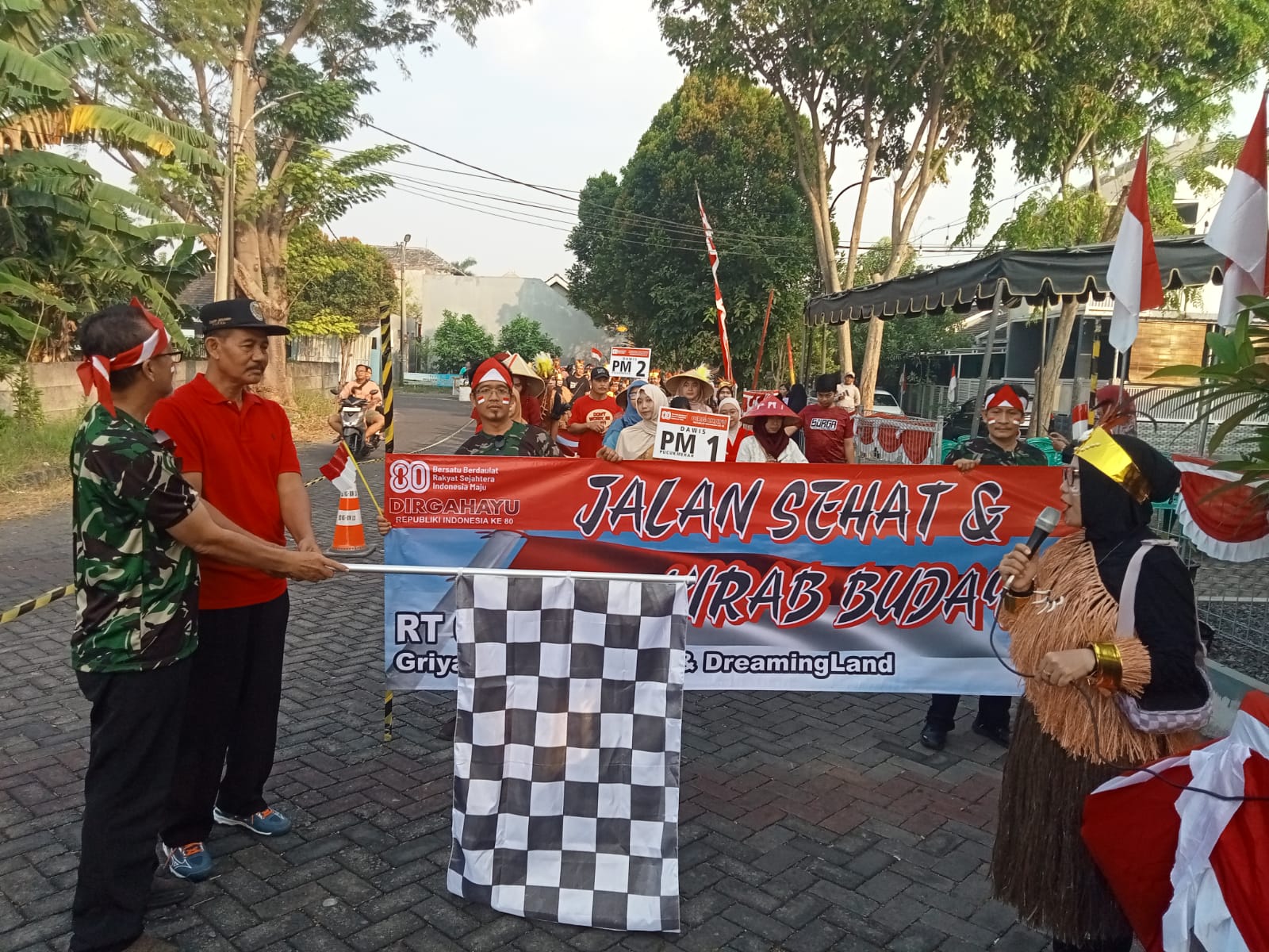 Ketua RW 13 Griya Benowo Indah/Dreaming Land, Bapak Suryanto, turut hadir dan memberikan apresiasi atas terselenggaranya acara ini. “Saya mengucapkan selamat atas diadakannya kirab budaya ini. Mudah-mudahan RT 5 RW 13 GBI/Dreaming Land bisa menjadi contoh bagi RT-RT lain dalam menyemarakkan HUT RI ke-80 ini,” kata Bapak Suryanto.