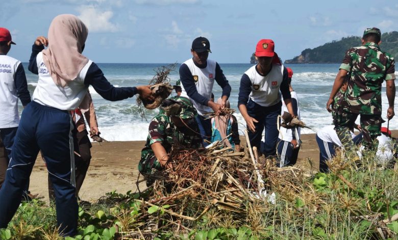 TNI dan Warga Bersatu Rawat Kebersihan Pantai Kili-Kili Trenggalek