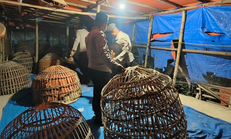 Dalam penggerebekan tersebut, petugas mengamankan sejumlah barang bukti, antara lain 3 buah sangkar ayam, 2 ekor ayam, 1 buah bandang (alat adu ayam), dan 1 buah kiso (alat membawa ayam).