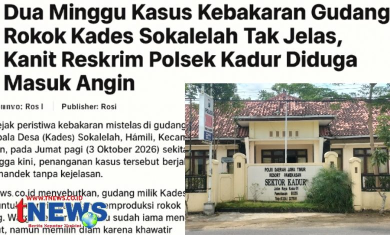 Pamekasan, Madura II tNews.co.id – Sudah dua minggu berlalu sejak peristiwa kebakaran misterius di gudang penyimpanan rokok milik Kepala Desa (Kades) Sokalelah, Hamili, Kecamatan Kadur, Kabupaten Pamekasan, pada Jumat pagi (3 Oktober 2025) sekitar pukul 04.30 WIB. Namun hingga kini, penanganan kasus tersebut berjalan di tempat, bahkan terkesan mandek tanpa kejelasan.
