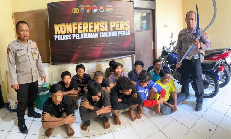 Dua remaja tersebut, H, 16, dan MA, 17, keduanya warga Semampir, Surabaya. Sementara itu, 10 remaja lainnya tidak terbukti membawa sajam dan dilakukan pembinaan.