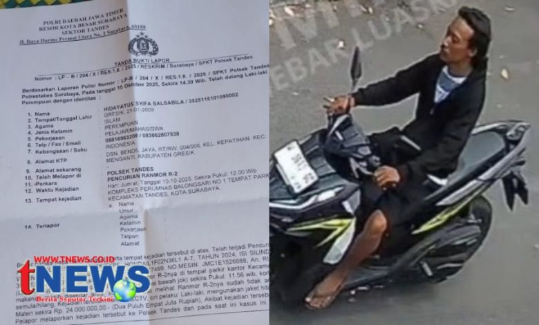 Surabaya, Jatim II tNews.co.id – Penanganan kasus pencurian kendaraan bermotor (curanmor) yang dilaporkan Hidayatus Syifa Salsabila di Polsek Tandes mendapat sorotan tajam. Pelapor mengaku kecewa berat karena hingga kini pihak kepolisian belum berhasil mengamankan pelaku, meski wajah terduga pelaku disebut terekam jelas dalam CCTV.