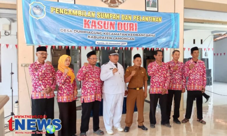 Lamongan, Jatim ll tNews.co.id – Pemerintah Desa Dumpiagung, Kecamatan Kembangbahu, Kabupaten Lamongan terus berupaya memperkuat tata kelola desa yang transparan dan responsif terhadap kebutuhan masyarakat. Salah satu upaya tersebut diwujudkan melalui agenda Pengambilan Sumpah dan Pelantikan Kepala Dusun (Kasun) Duri yang berlangsung pada Kamis (20/11/2025) di Pendopo Kantor Desa Dumpiagung.