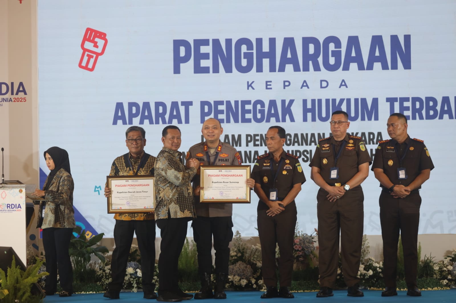 Penghargaan diberikan langsung dalam sesi utama HAKORDIA 2025 sebagai bentuk apresiasi atas capaian kinerja Polres Sumenep Polda Jatim dalam penanganan perkara korupsi secara cepat, profesional, dan berintegritas.