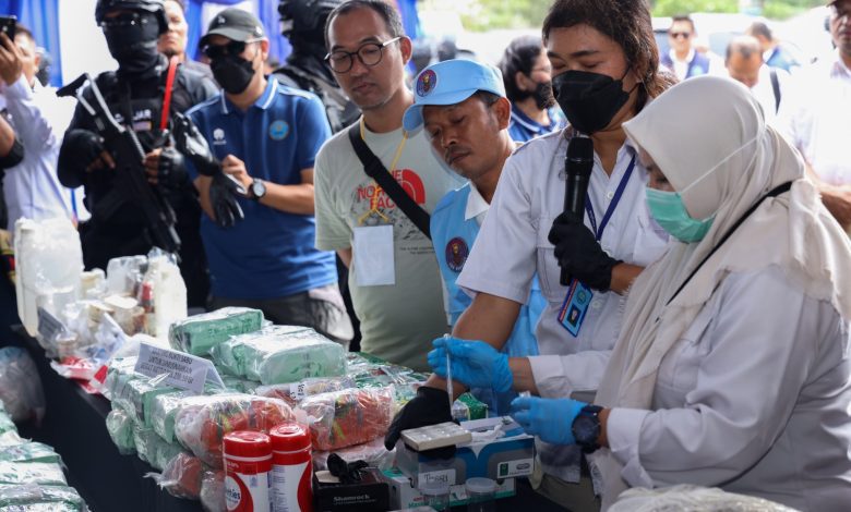 Barang bukti narkotika yang dimusnahkan meliputi 113.230,10 gram sabu; 318 ml sabu cair; 233.866,21 gram ganja; 5.044 butir dan 28,18 gram ekstasi; 3.911 ml prekursor cair: 1.064 gram prekursor padatan; 2.602 ml cairan bahan kimia; serta 1.300 gram bahan kimia padatan. Sebelumnya, total barang bukti yang disita mencapai 113.653,66 gram sabu; 329 ml sabu cair; 235.113,13 gram ganja; 5.085 butir dan 29,14 gram ekstasi; 3.911 ml prekursor cair; 1.064 gram prekursor padatan; 2.602 ml cairan bahan kimia; serta 1.300 gram bahan kimia padatan.