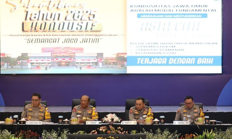 “Situasi Kamtibmas sepanjang tahun 2025 di Jawa Timur relatif kondusif,” ungkap Irjen Pol Nanang.