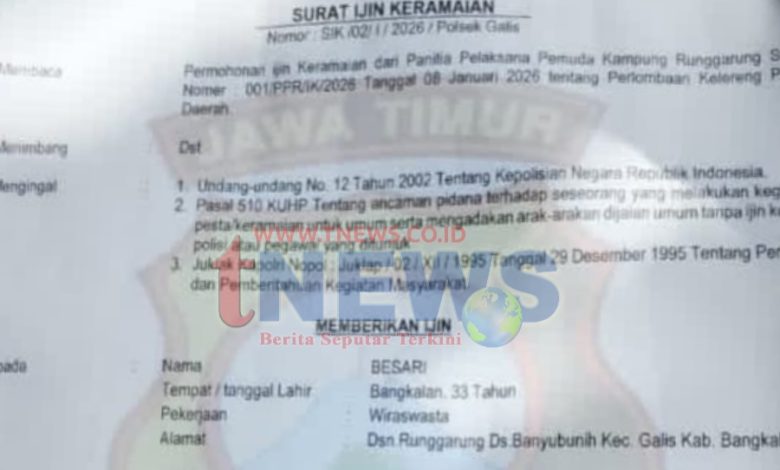 Pasalnya, kegiatan yang disebut sebagai “Lomba Kelereng Putra Daerah” tersebut diduga mengandung unsur perjudian, namun justru mengantongi Surat Izin Keramaian dari Polsek Galis.