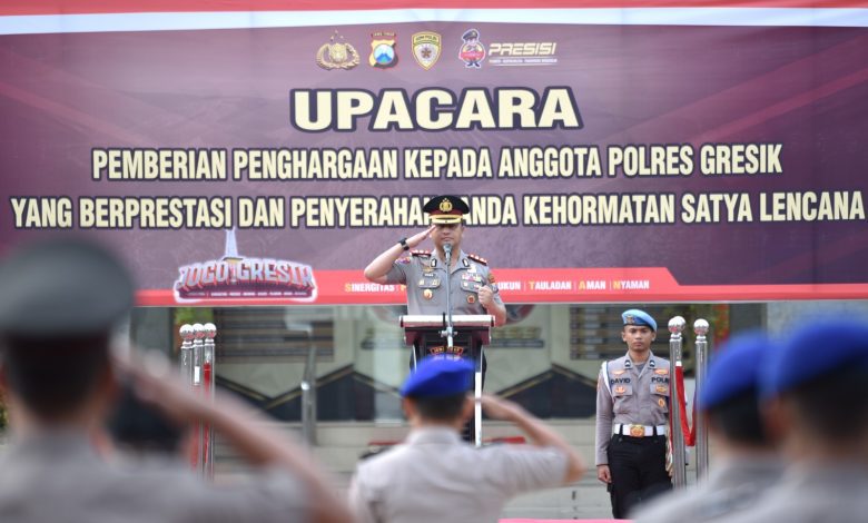 GRESIK, Jatim II tNews co.id – Kepolisian Resor (Polres) Gresik menggelar upacara pemberian penghargaan serta penyerahan tanda kehormatan kepada personel berprestasi di halaman Mapolres Gresik, Senin (26/1/2026) pagi.