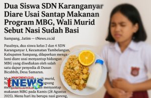 Dua Siswa SDN Karanganyar 1 Diare Usai Santap Makanan Program MBG, Wali Murid Sebut Nasi Sudah BasiBantuan Sosial, Nasional, Peristiwa|29 Agustus 2025oleh AdminSampang, Jatim II tNews.co.id – Program Makanan Bergizi Gratis (MBG) yang digadang-gadang