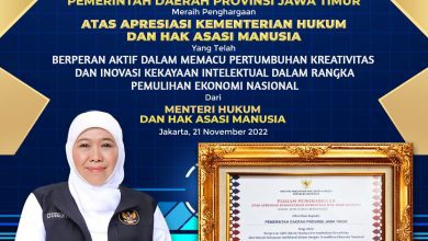 Pemprov Jatim Terima Penghargaan Kemenkumham Terkait Kreatifitas dan Inovasi Kekayaan Intelektual (KI). Gubernur Khofifah Sebut Percepatan Pertumbuhan KI Pacu Kebangkitan Ekonomi